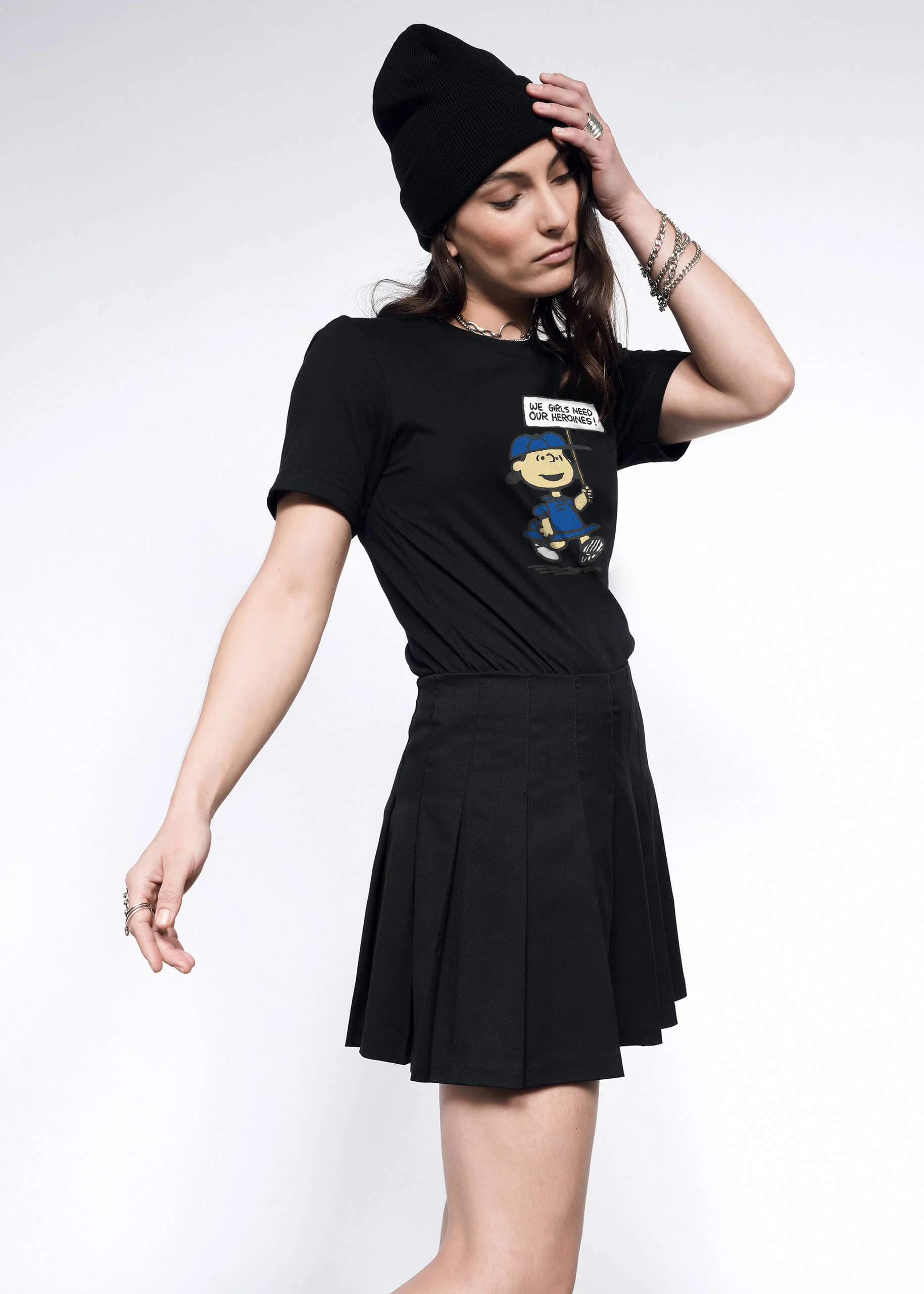 Ever the fearless leader, Lucy Van Pelt makes a statement with this soft, relaxed-fit tee, proudly declaring "We girls need our heroines" - a message as strong, spirited, and unwavering as she is.