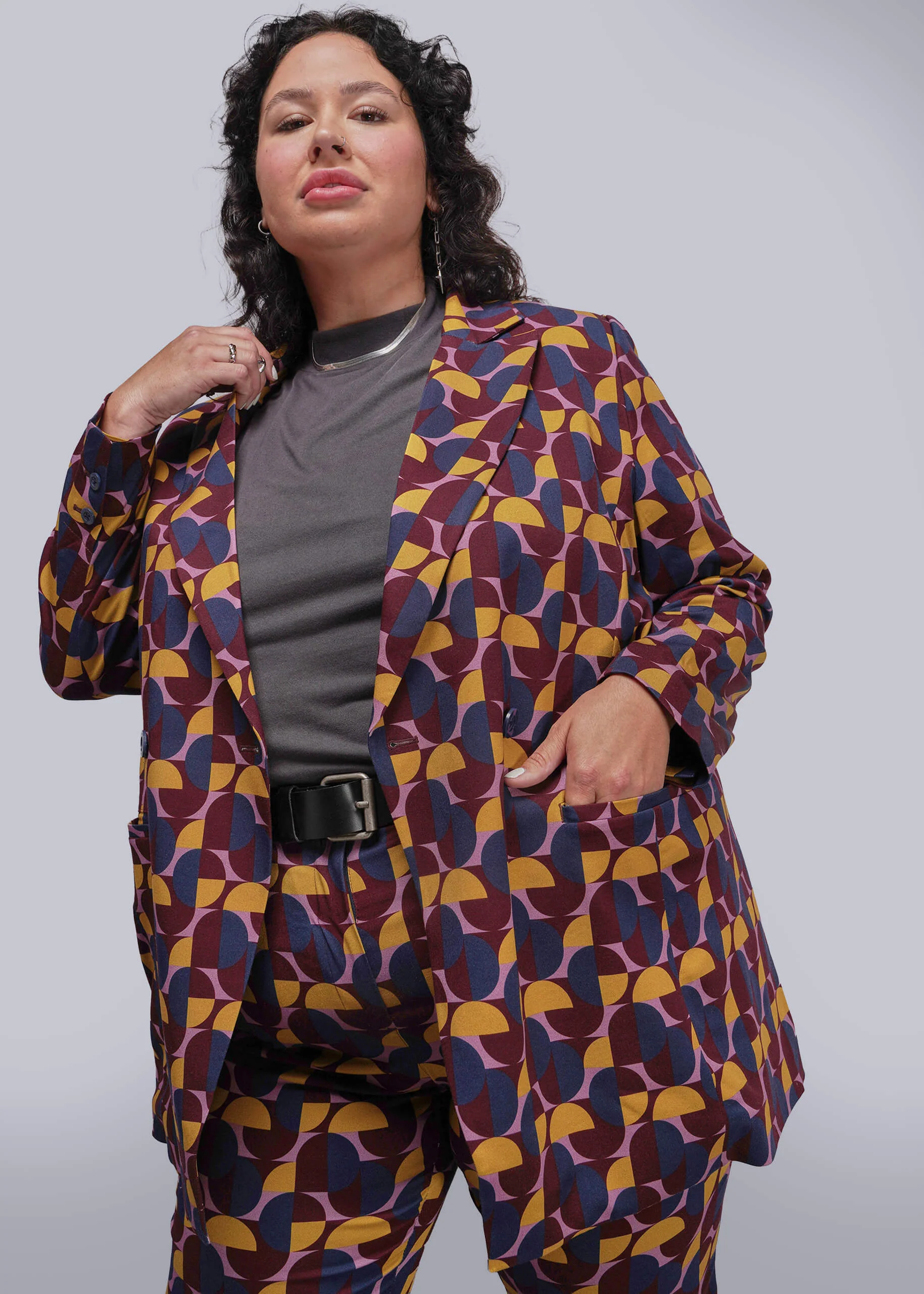 This bold long-line blazer is the perfect combination of tailored and oversized. Featuring a soft, stretchy, breathable material and silky lining, it fits true to size. Size up for a more relaxed fit.