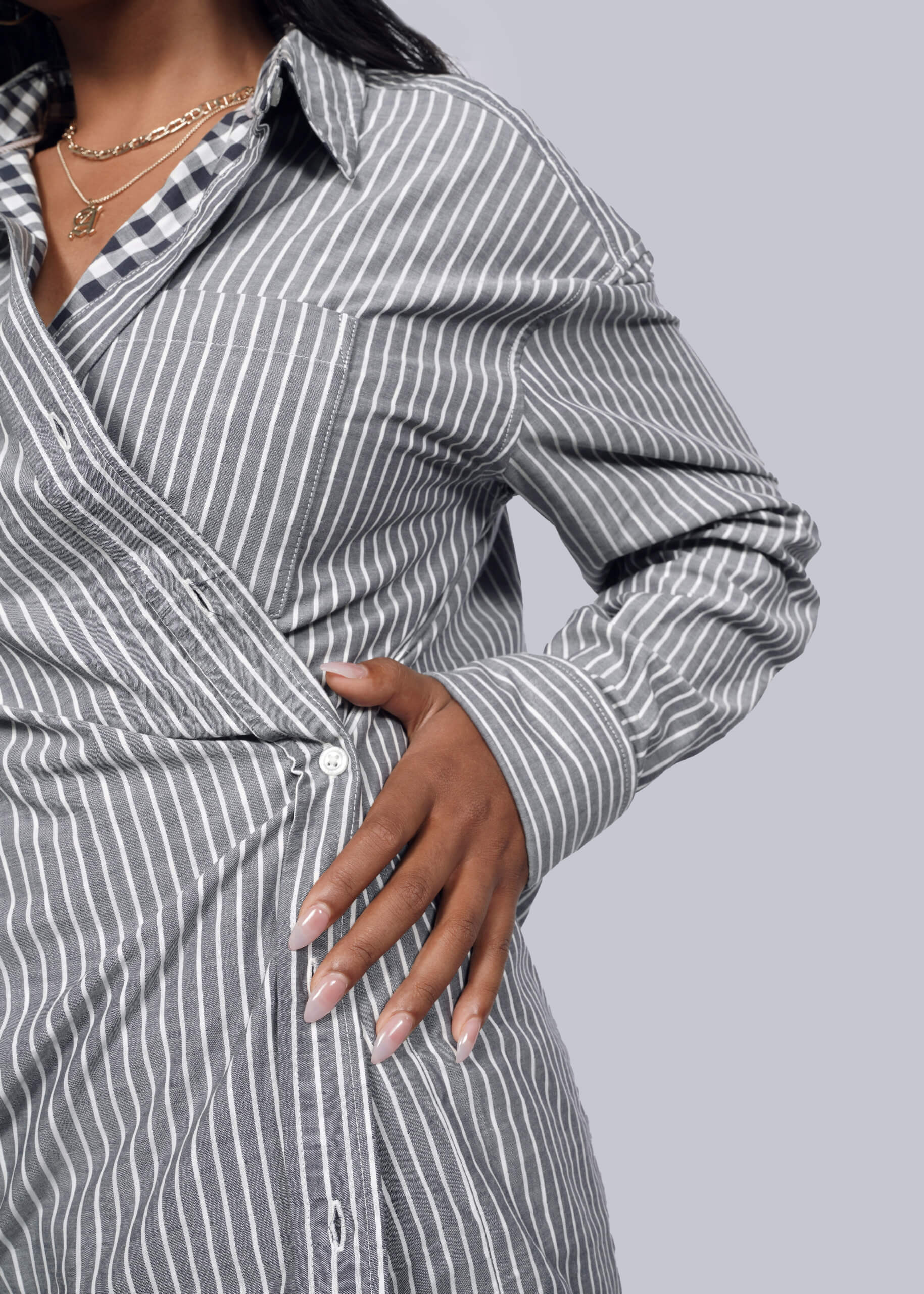 All the details of a classic Oxford button up - soft cotton, buttoned French cuffs, chest pocket- with a twist (literally). Convert this top from an oversized style to a fitted wrap with a few quick buttons and transform your look in seconds.